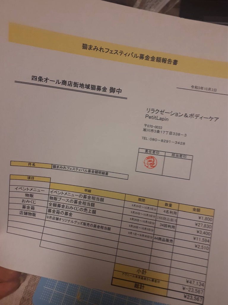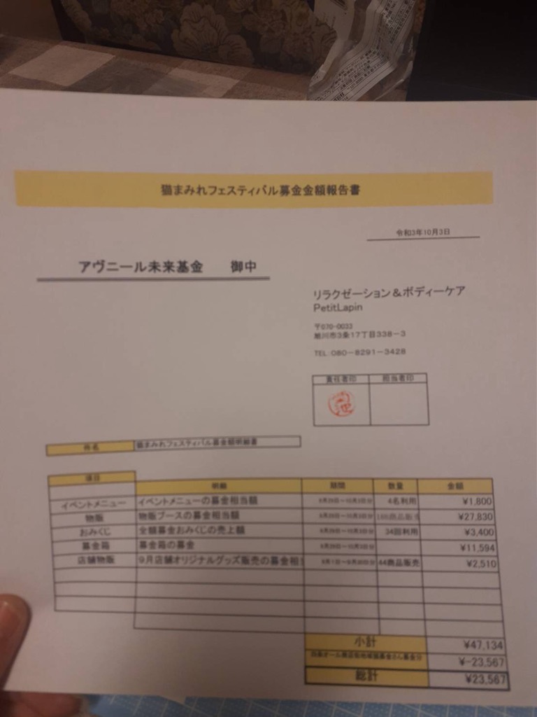 全てを合計し、今回のイベントの募金額は総額で¥47134となりました🌻🐱🌻