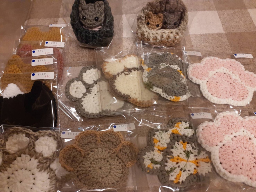 当店の雑貨コーナーのハンドメイド作家さん『pecora』さんの可愛い猫モチーフの編み物作品を販売いたします✨