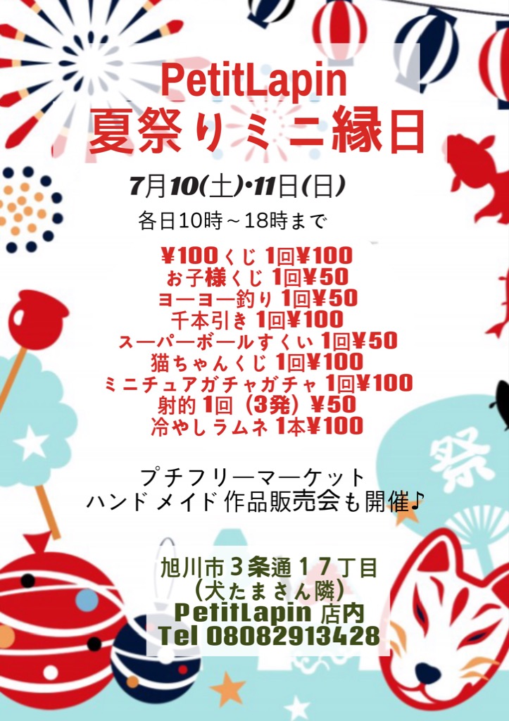 ミニ縁日は10日、11日の2日間10時から18時までご予約無しでご利用可能ですので、どなたでもご来店下さい☆