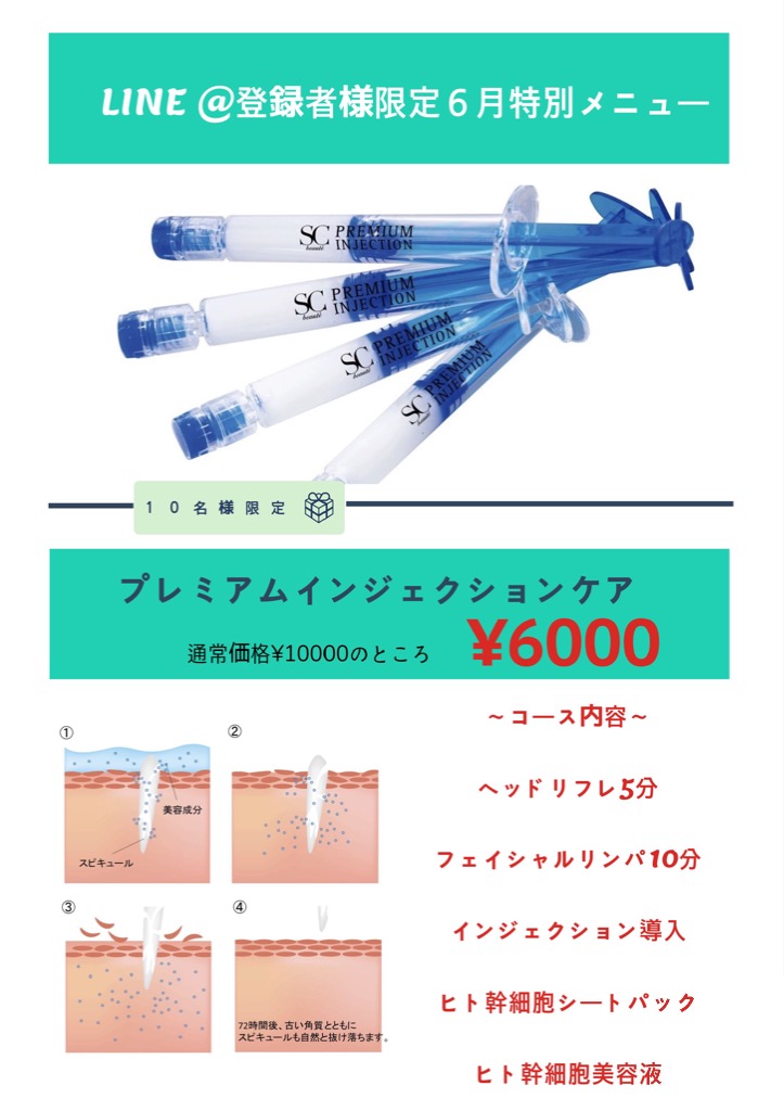今回のメニューはお客様よりご要望の多かったスピキュールを使用した美容液導入が出来るフェイシャルコースです✨7月からは通常価格¥10000でご提供のコースになりますが今回は何と特別価格¥6000にてご提供♪